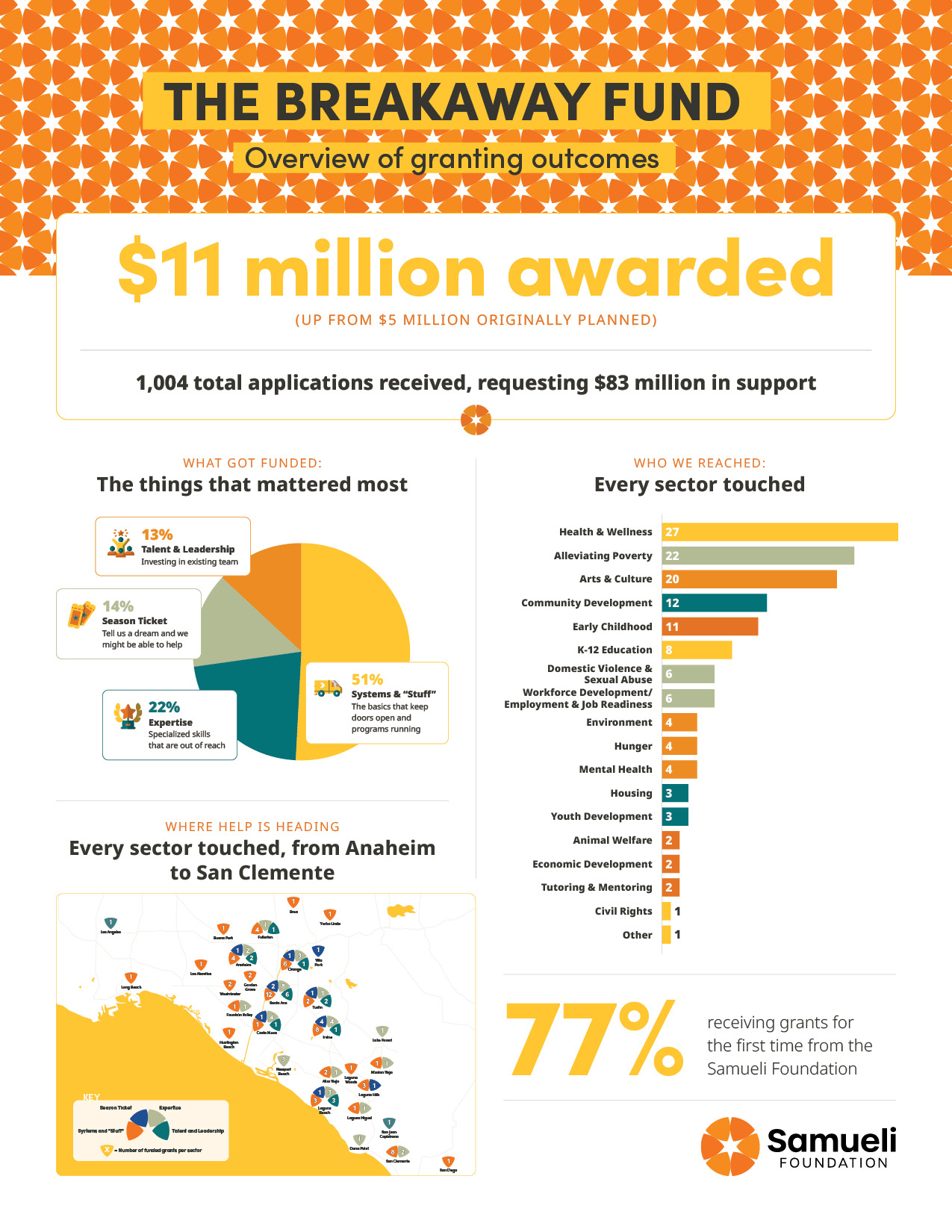 The Samueli Breakaway Fund was established to address the needs of Orange County nonprofits and help create a lasting impact on Orange County communities. Out of 1,004 applications, The Joyful Breakaway: A Quest to Keep Kids Safe places The Joyful Child Foundation among 138 organizations receiving support to help deliver mission-critical programs and services to those who need it most. The first-of-its-kind grantmaking initiative was expanded to $11M from its initial $5M budget based on the urgent community-based needs.